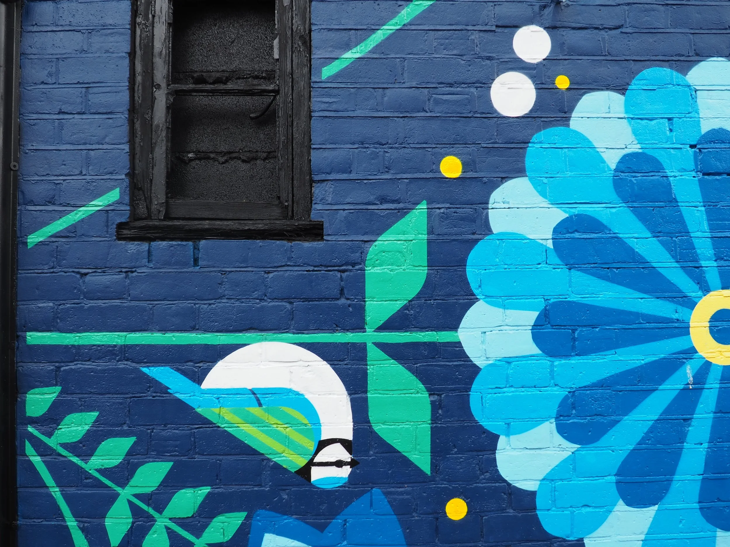Nestled beside Montrose Park in Burnt Oak, this bold and vibrant mural immediately captures attention as you approach the park. Inspired by the natural beauty of the park itself, the mural radiates with intricate, mandala-like patterns that incorporate various elements from the surrounding environment. Leaves, flowers, and depictions of local wildlife are intricately woven into the design, creating a harmonious blend of nature and art that mirrors the serenity and life of the park.