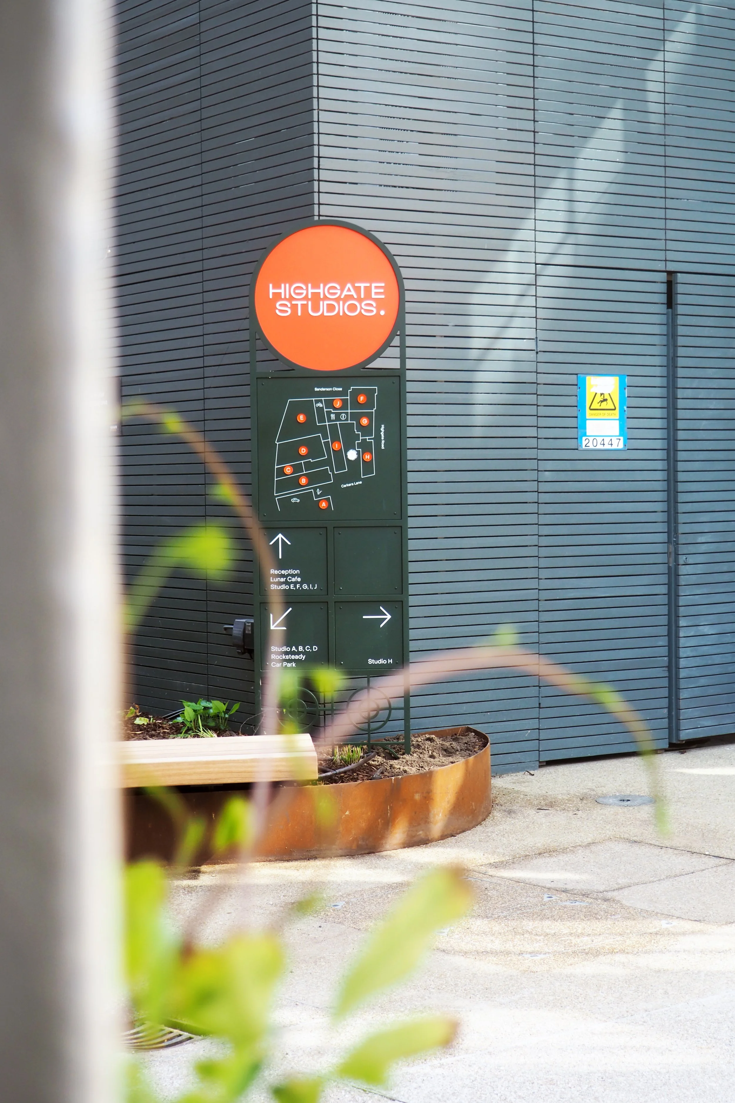 We were commissioned to design and develop a bold and characterful wayfinding scheme for Highgate Studios, bringing clarity and cohesion to both external and internal touchpoints across the site.