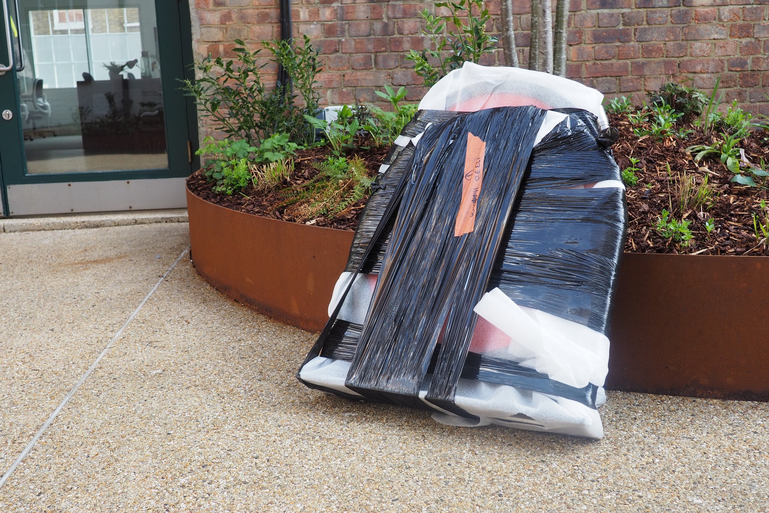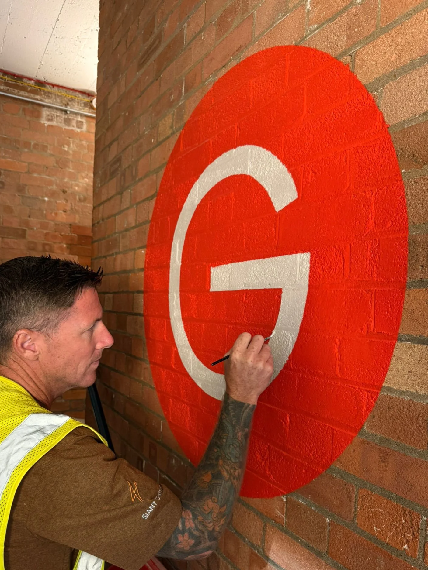 Inspired by the studio’s rich industrial heritage, the scheme takes a playful yet considered approach — weaving together brand and place through graphic storytelling and sculptural form. Simple line illustrations nod to the building’s past as a factory, depicting industrial processes where used in 2D and 3D physical forms.