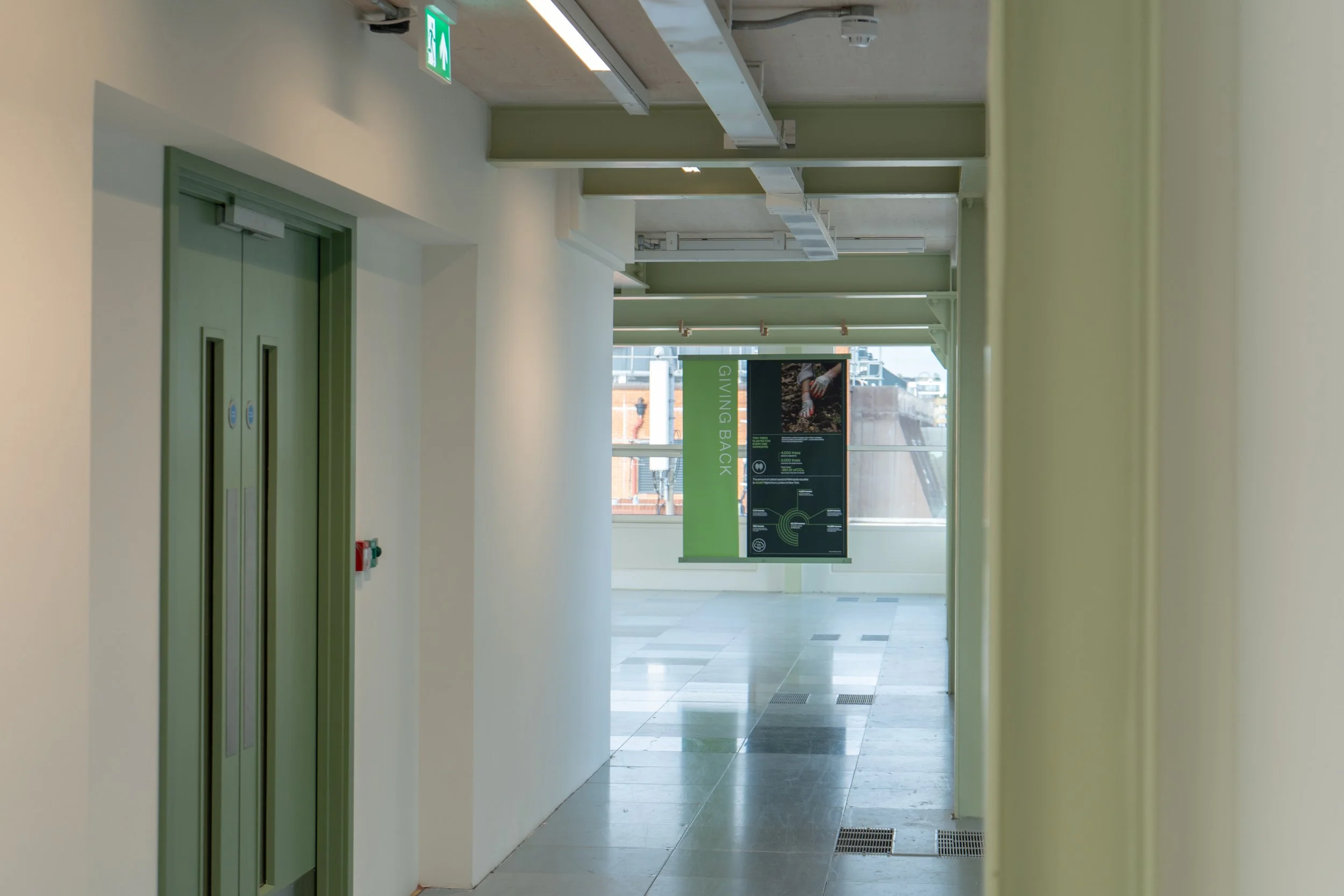 We developed a layered system of marketing graphics that brings these themes to life—turning the interior into a physical expression of the brand. Thoughtfully positioned interventions guide visitors through a unified spatial and informational experience, immersing them in the building’s vision, technical specification and wider context.